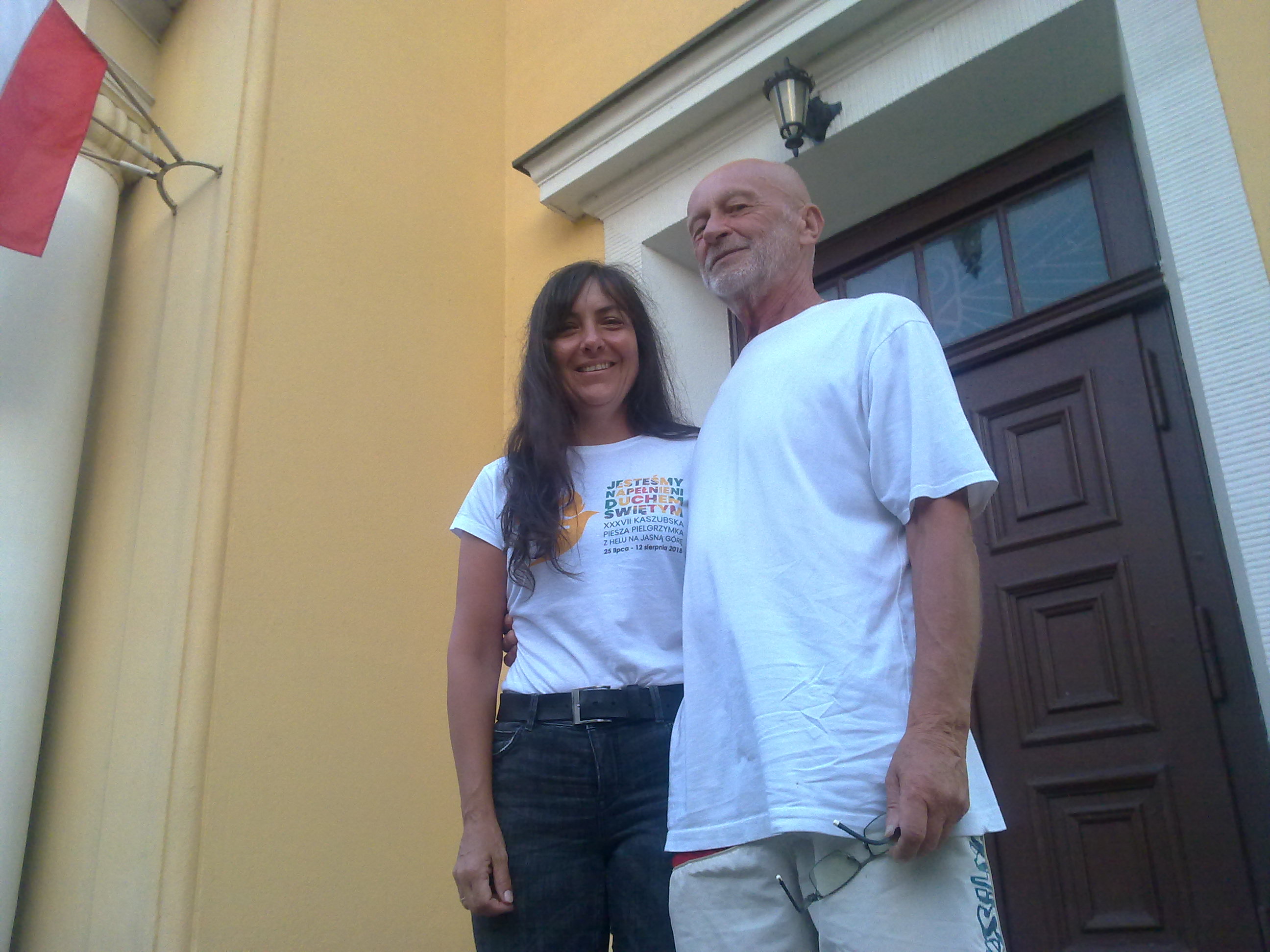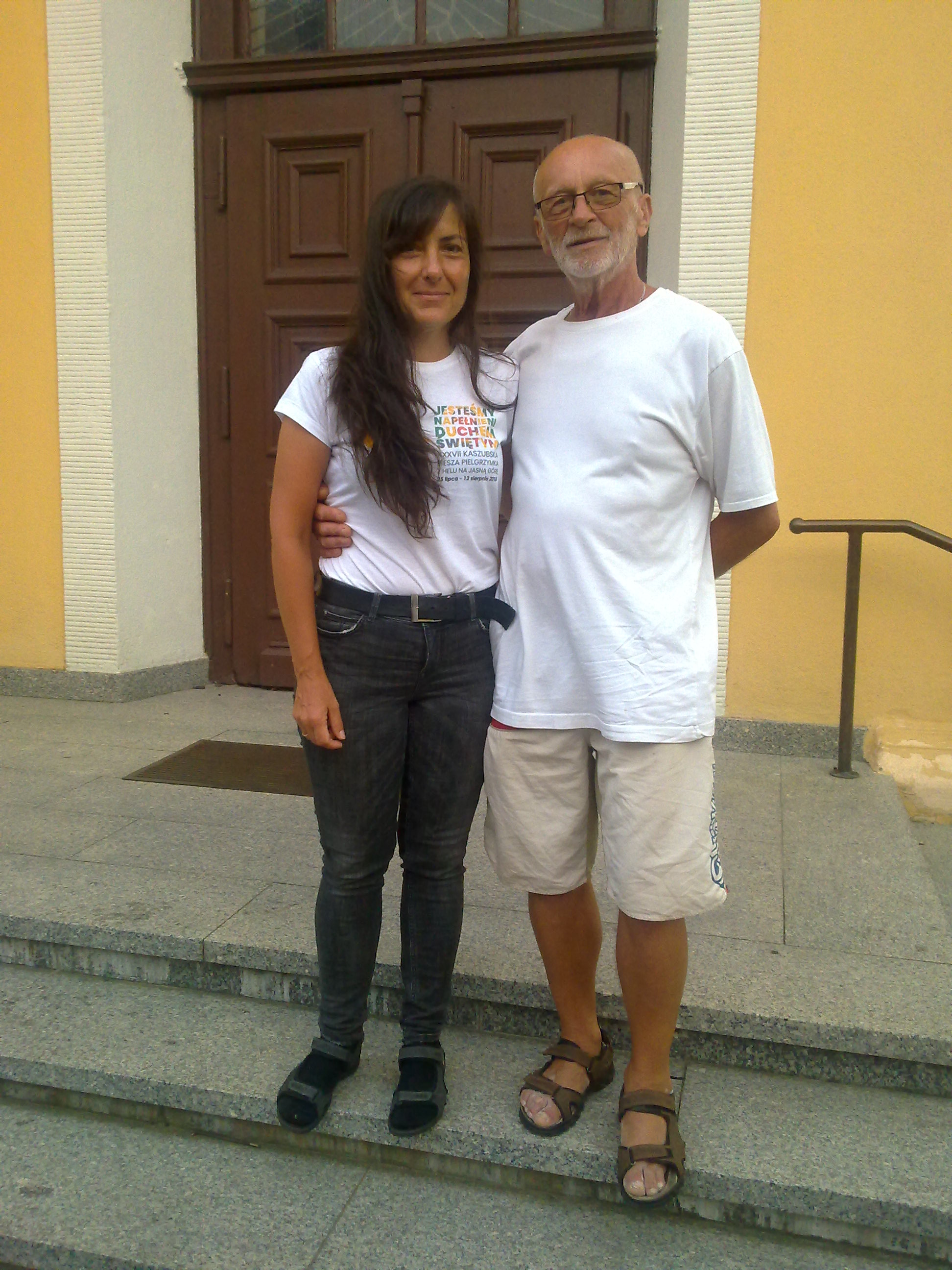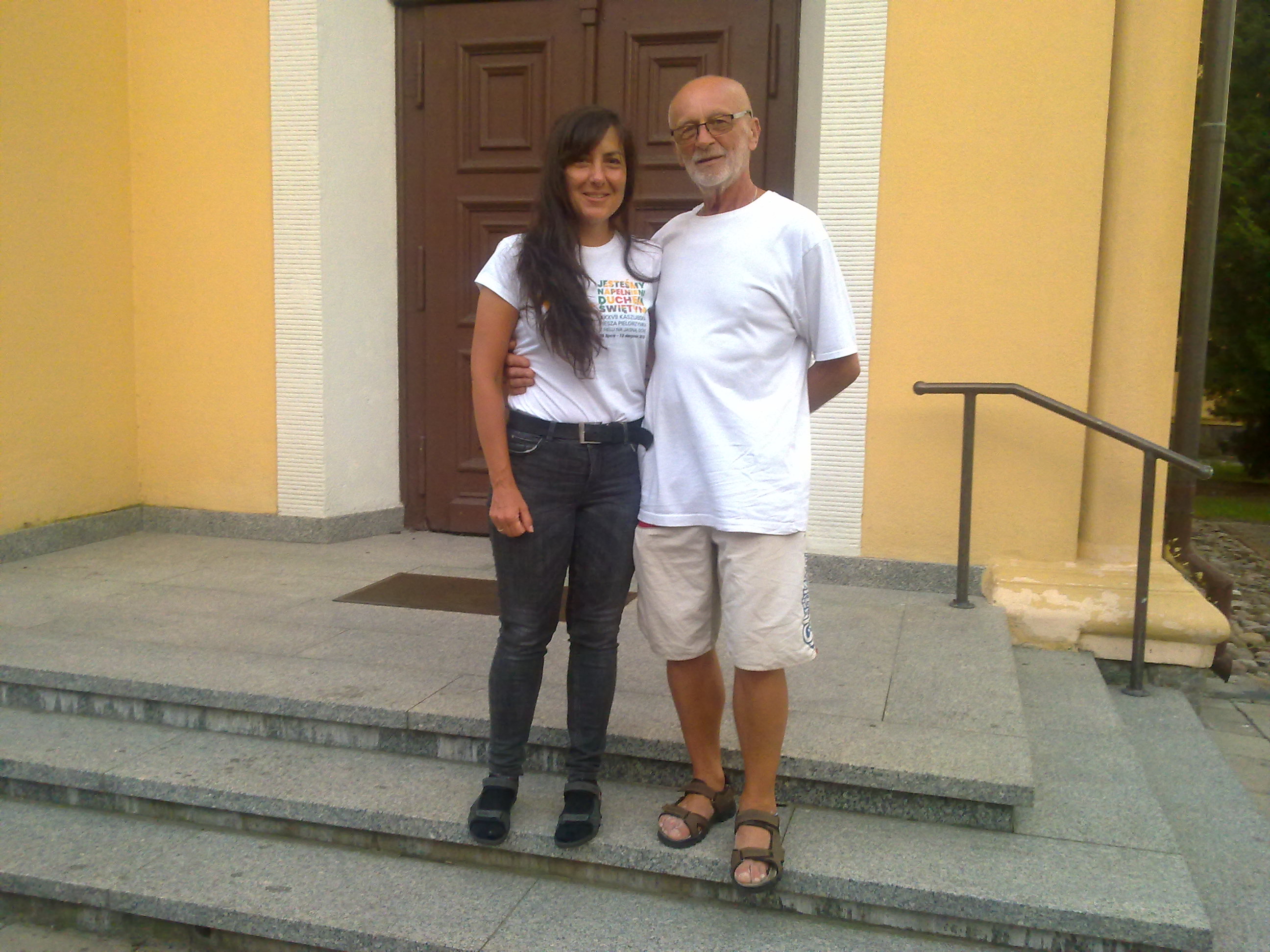 Siostra Hania i Jurek na tle kościoła pw. św. Jakuba Apostoła Starszego w Lubichowie …