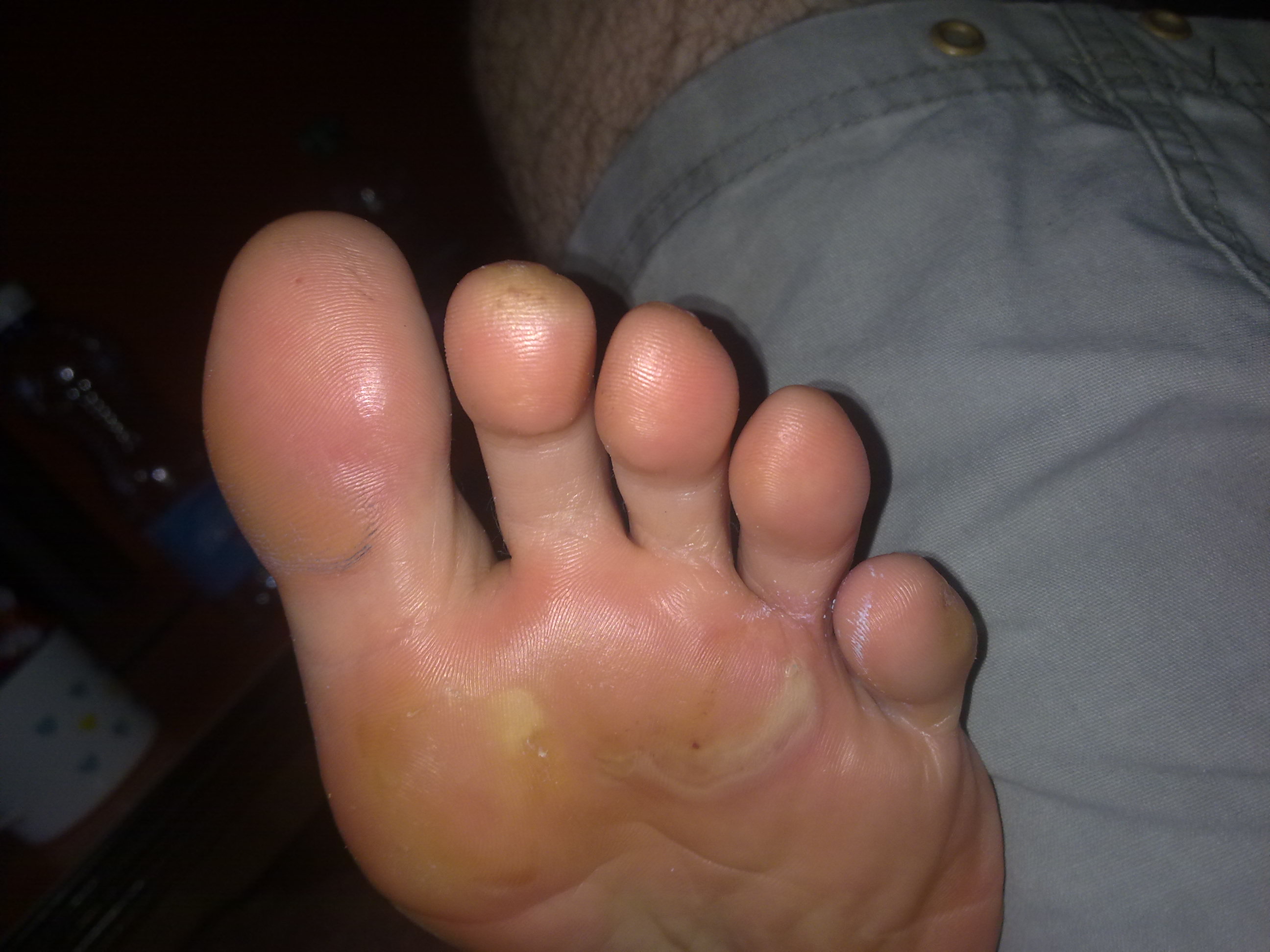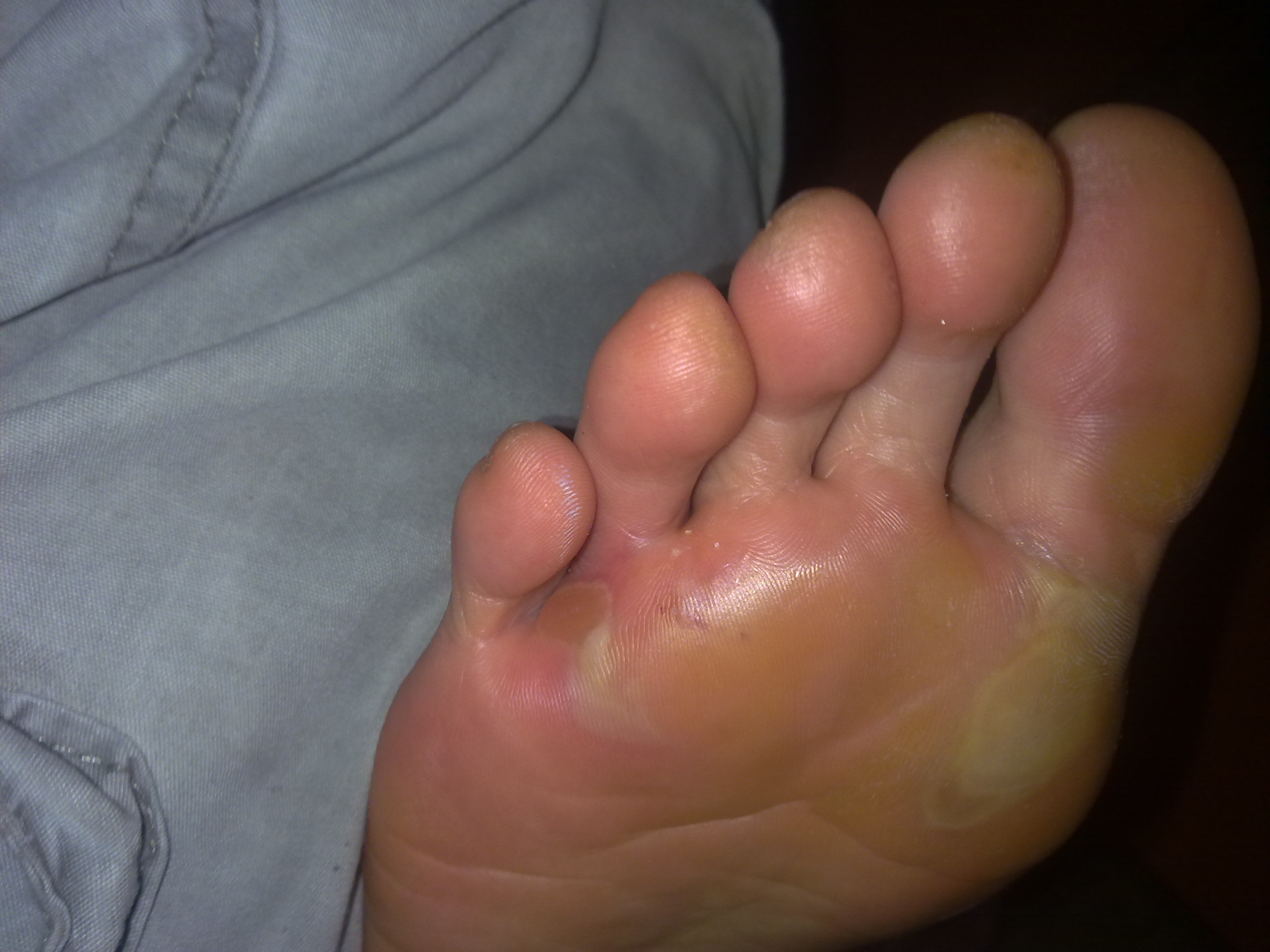 W chwili rozczulania się nad sobą ;-) – stan moich stóp w Morzyczynie (stopa prawa)