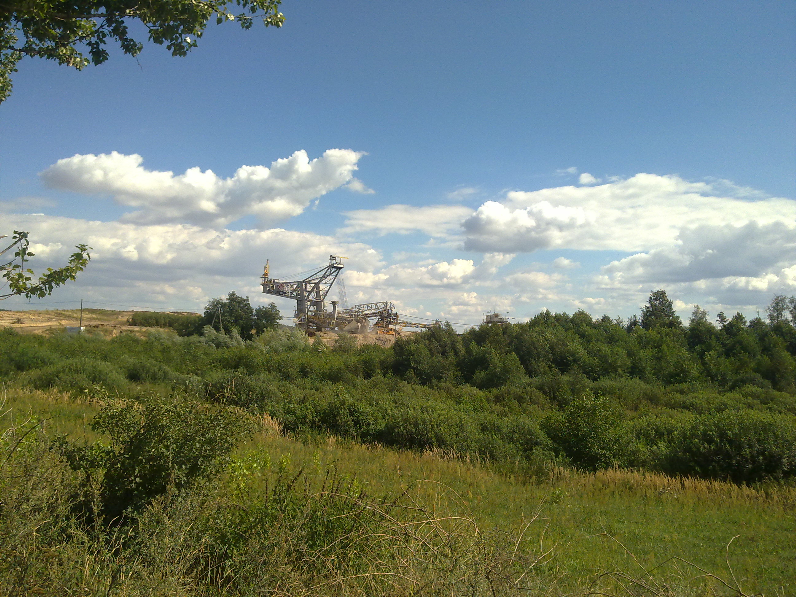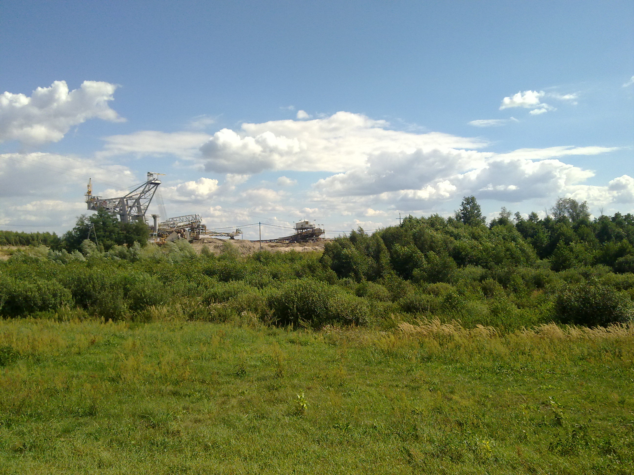 Trochę dziwny widok – zza zieleni traw i drzew wyłania się koparka odkrywkowa
