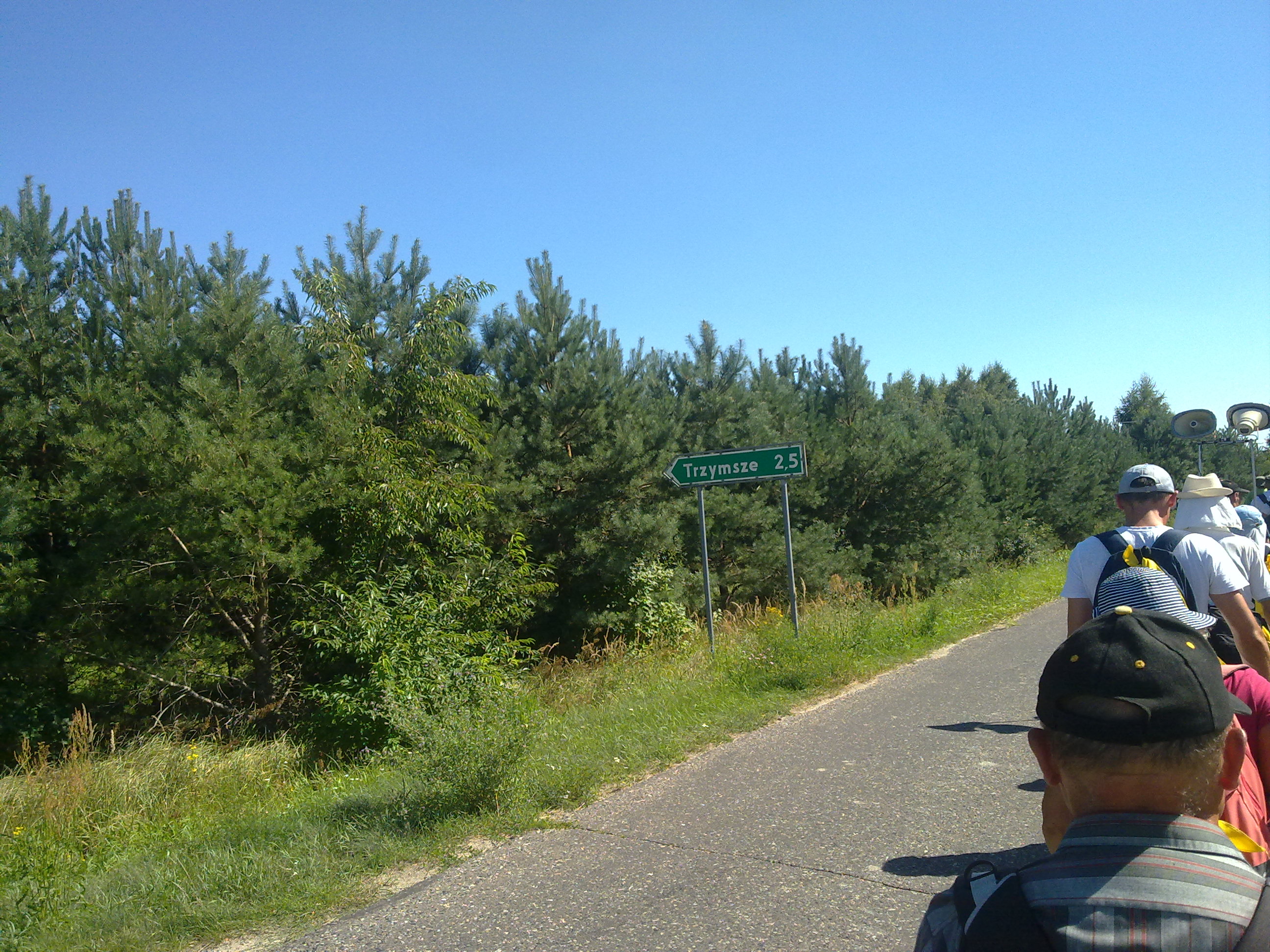 Przed Kamykiem na wzniesieniu, gdzie pierwszy raz widać Jasną Górę (zasłonięty przez prawe drzewo, niestety)