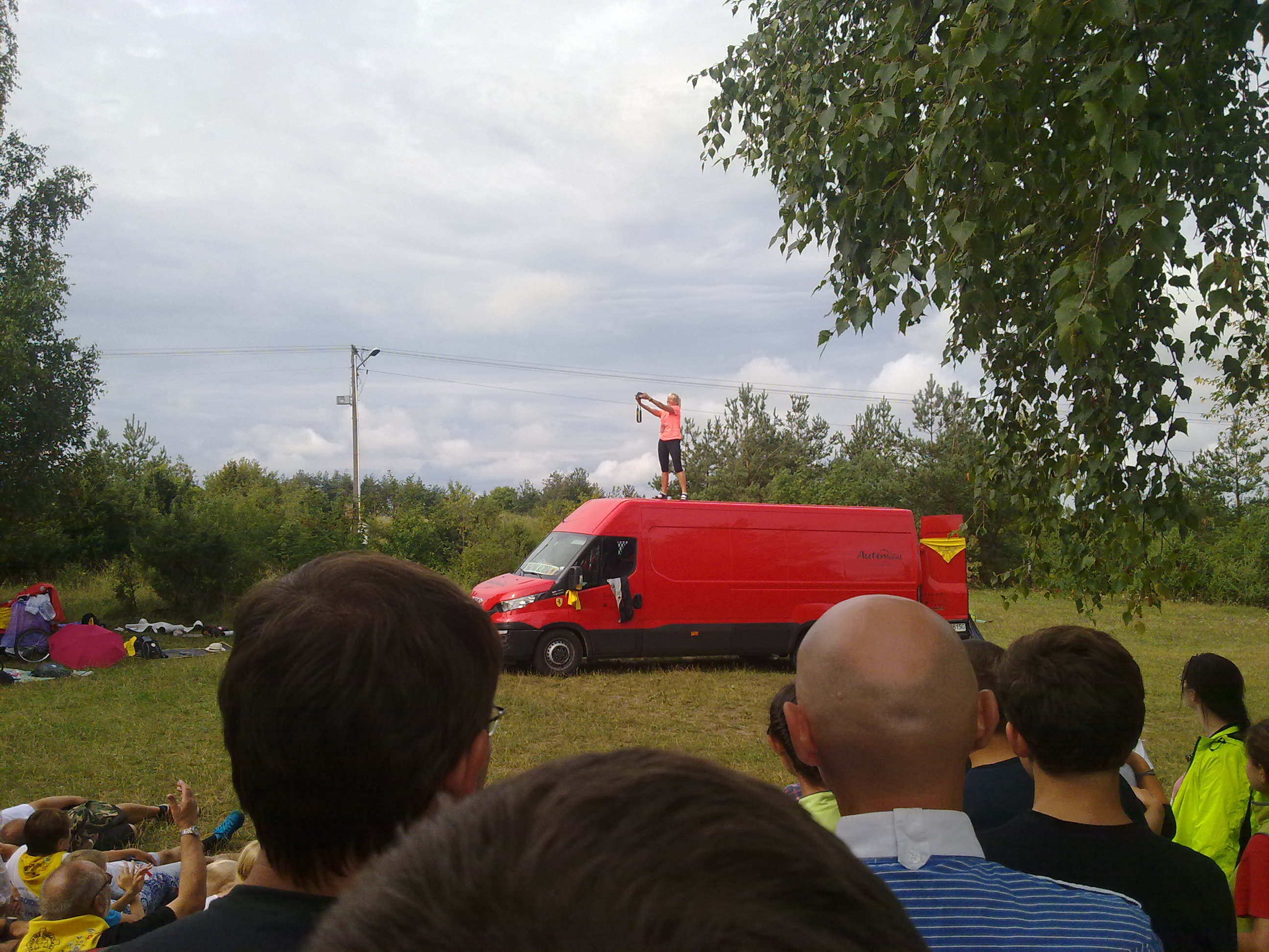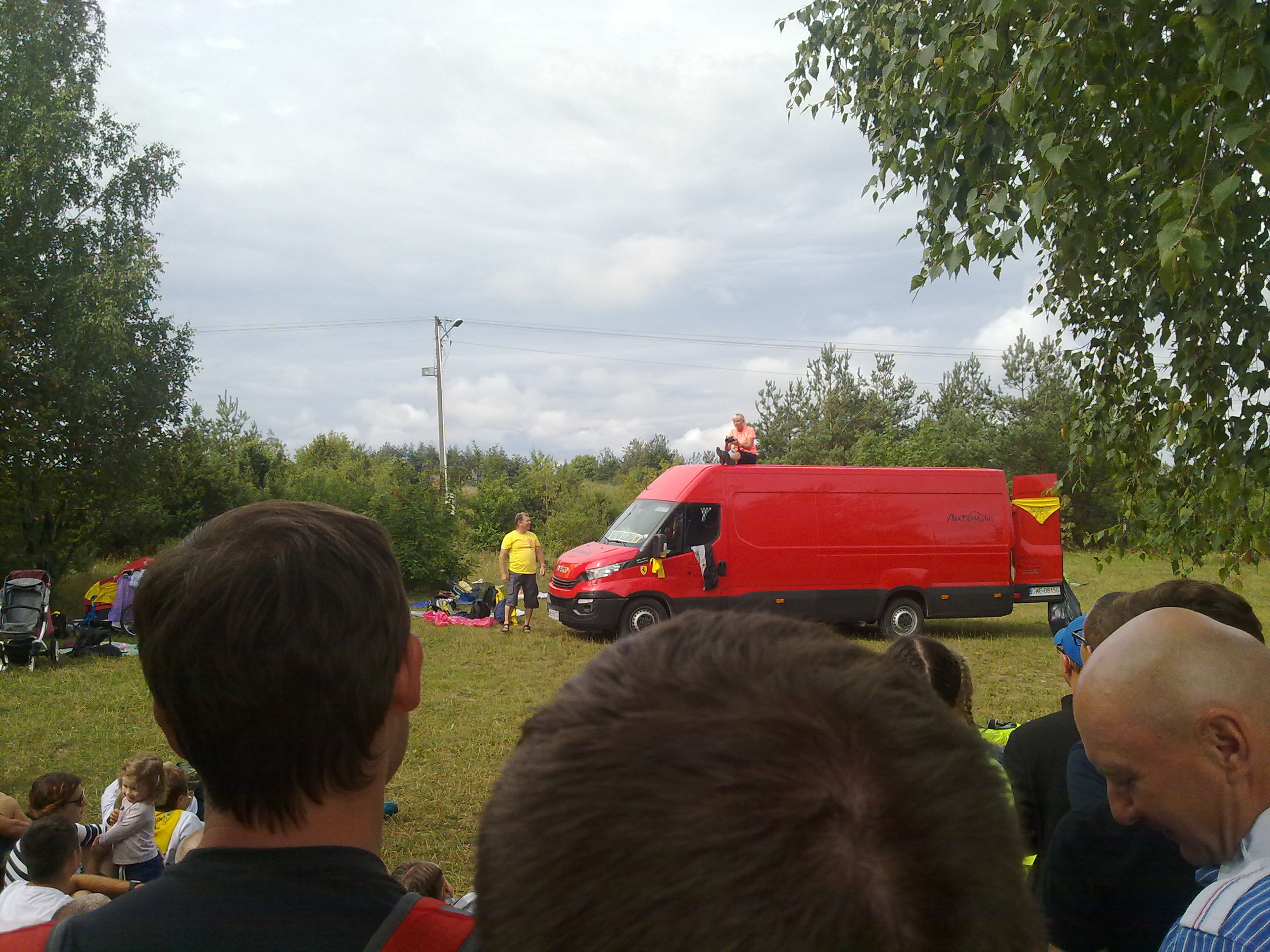Na Górce Przeprośnej Sławek na dachu furgonu robi grupowe zdjęcia…