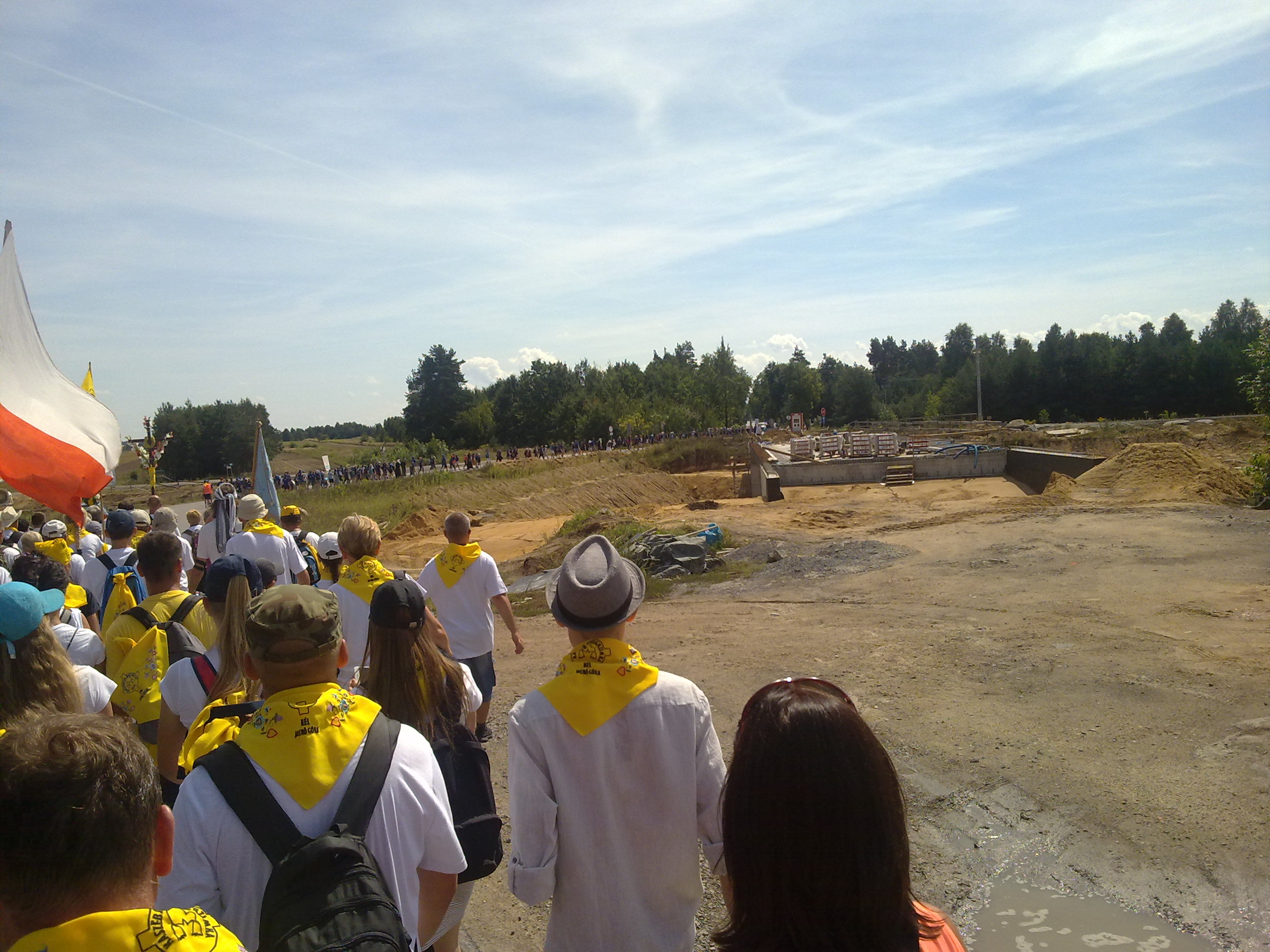 Wcześniej dogoniliśmy pielgrzymkę gdyńską (a tak wyprzedzaliśmy w zeszłym roku toruńską) i na budowie węzła autostrady A1 pomiędzy Kamykiem a Kiedrzyniem był dobry moment na zdjęcie