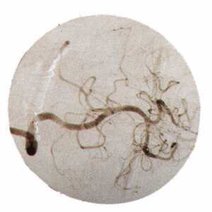 obrazuje żyły i tętnice (nie tylko w mózgu). Po wstrzyknięciu kontrastu (substancji promieniotwórczej o krótkim czasie życia) wykonuje się zdjęcia rentgenowskie. Dopływ krwi ma kluczowe znaczenie w diagnozach udarów niedokrwiennych i wylewów krwi do mózgu.