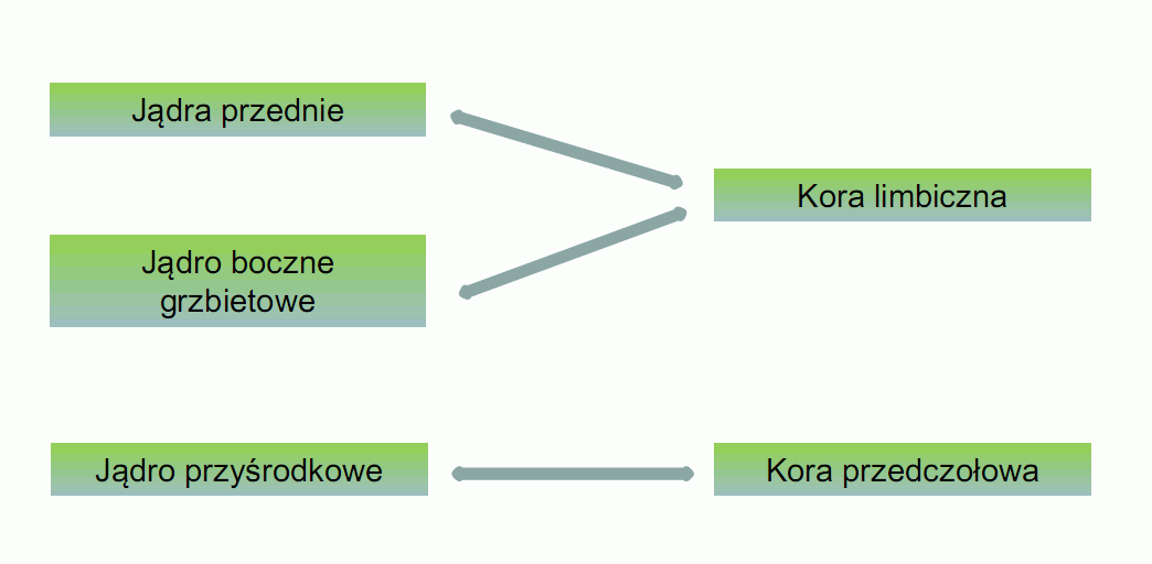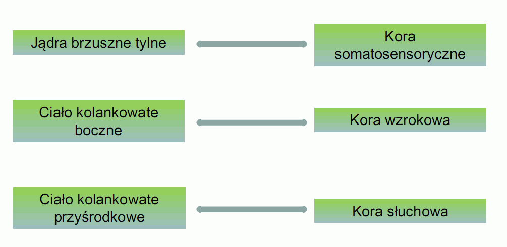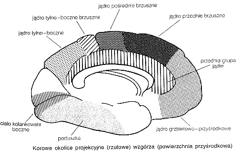 Projekcje z wzgórza do kory mózgu. |