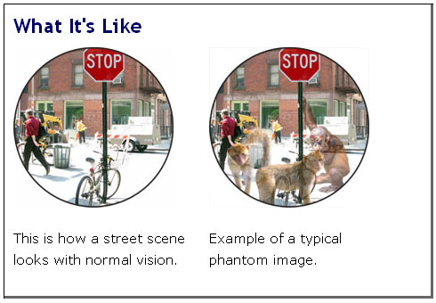 Takie urojenia należy odróżnić od parahalucynacji wzrokowych ludzi niedowidzących lub ludzi, którzy utracili wzrok, czyli zespołu Charlesa Bonneta, gdyż w tym przypadku ludzie zdają sobie sprawę, że mają halucynacje, system formowania przekonań nie ulega zaburzeniu. Innym rzadkim zespołem neuropsychiatrycznym, w którym pojawiają się parahalucynacje, a więc ludzie zdają sobie sprawę z ich nierealności, jest zespół pedunkularny Lhermitte’a (ang. Lhermitte's peduncular hallucinosis), związany z organicznym uszkodzeniem mostu i konarów móżdżku. Występujące objawy, znane też jako omamy pedunkularne, halucynoza pedunkularna, lub halucynacje szypułkowe, podobne są do wrażenie patrzenia z oddali (jakby przez odwróconą lornetkę). Może to trwać przez kilka sekund, ale powtarzać się przez wiele tygodni a nawet lat, obejmować całe pole widzenia w którym ludzie wyglądają jak lilipucie a zwierzęta są malutkie. Parahalucynacjom wzrokowym mogą też towarzyszyć omamy słuchowe.