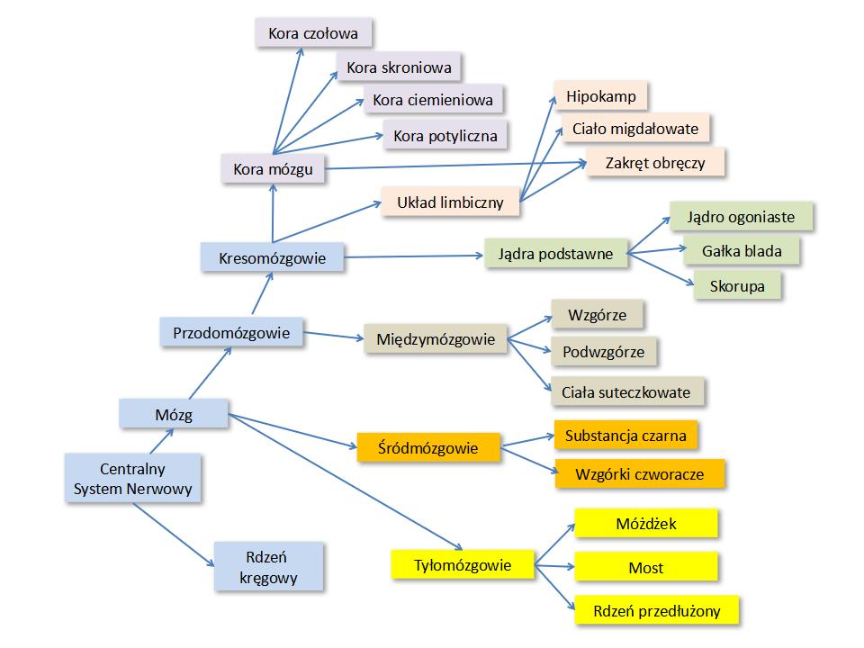 Podsumowując mamy następujące najważniejsze struktury, uporządkowane częściowo hierarchicznie. Jest ich oczywiście znacznie więcej, w samym podwzgórzu wiele drobnych jąder, każda z wymienionych struktur ma wiele funkcji i złożoną budowę, ale takie schematy pozwalają na ogólną orientację.