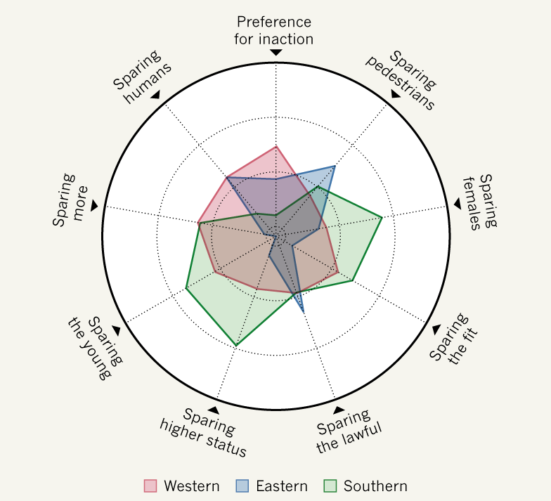 Jeśli przyjrzymy się społeczeństwom spoza Europy różnice w podejściu do zabijania były jeszcze większe. Masakra katarów, krucjaty i liczne wojny protestantów z katolikami były motywowane większym dobrem. Postawy utylitarne uzasadniają obronę granic przed uciekinierami z krajów ogarniętych wojną. Postawy deontologiczne uzasadniają niesienie pomocy ludziom cierpiącym.