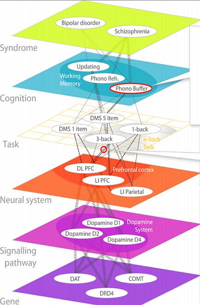 Opracowano tablice opisujące te złożone systemy, identyfikując geny, białka i molekuły służące przenoszeniu informacji, komórki, mikroobwody i sieci neuronalne, łączące je z fizjologią, zachowaniem, kwestionariuszami psychologicznymi, oraz paradygmatami badawczymi.