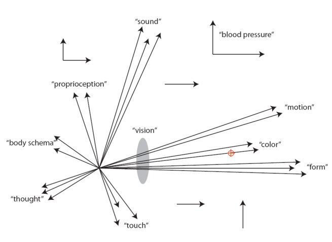 Kolor, wysokość i barwa dźwięku są perceptami, a nie i fizycznymi własnościami fal elektromagnetycznych czy akustycznych docierających do oka i ucha. Mózg przetwarza fizyczne bodźce w taki sposób, by na poziomie świadomych doznać ułatwić nam podejmowanie decyzji.