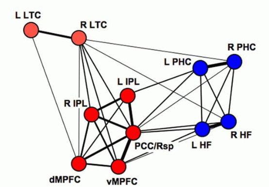 Za: R.L. Buckner, J R. Andrews-Hanna, D.L. Schacter. The Brain’s Default Network. Anatomy, Function, and Relevance to Disease. Ann. N.Y. Acad. Sci. 1124: 1–38 (2008)