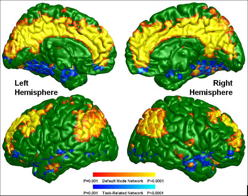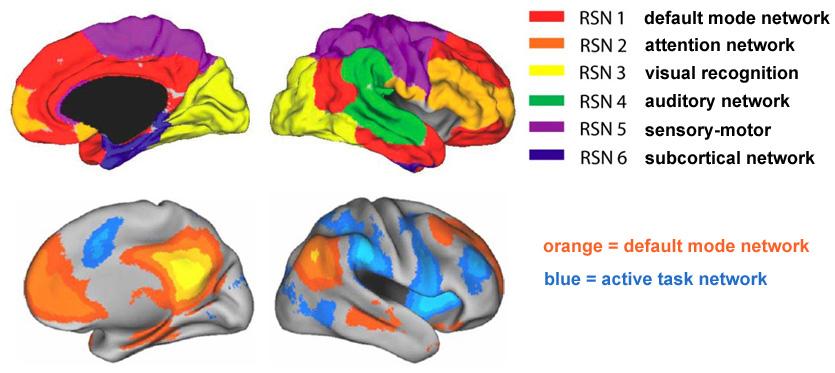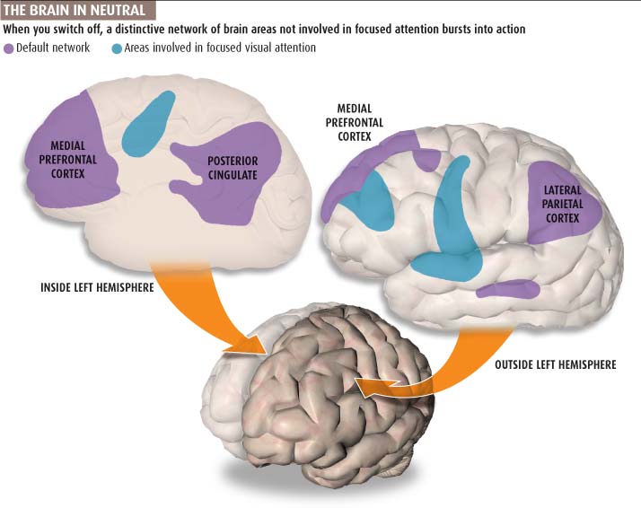 niektóre obszary mózgu są negatywnie skorelowane z wykonywaniem zadań wymagających uwagi i obserwacji, uaktywniają się wówczas, gdy "nic nie robimy" ale jesteśmy wypoczęci i świadomi.