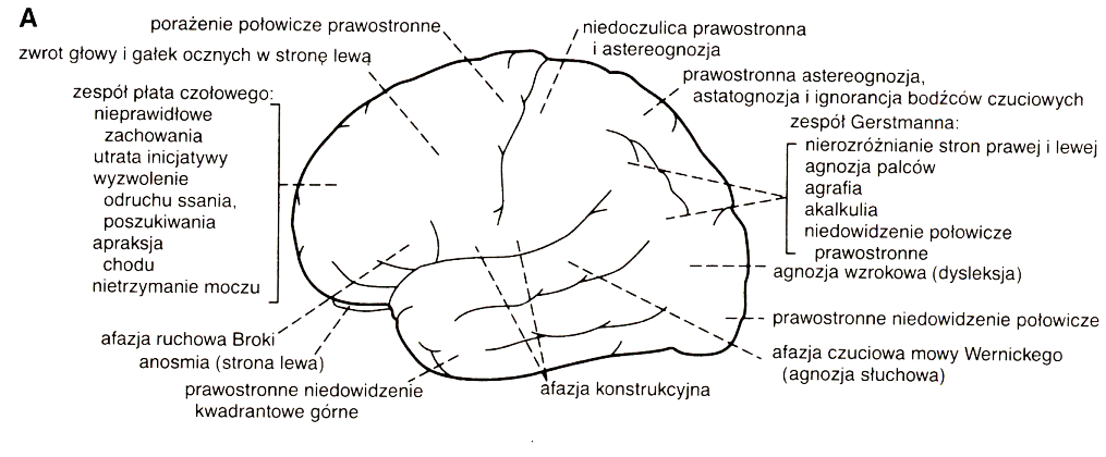 - lewa półkula - trudności w rozumieniu mowy (afazja Wernickego);