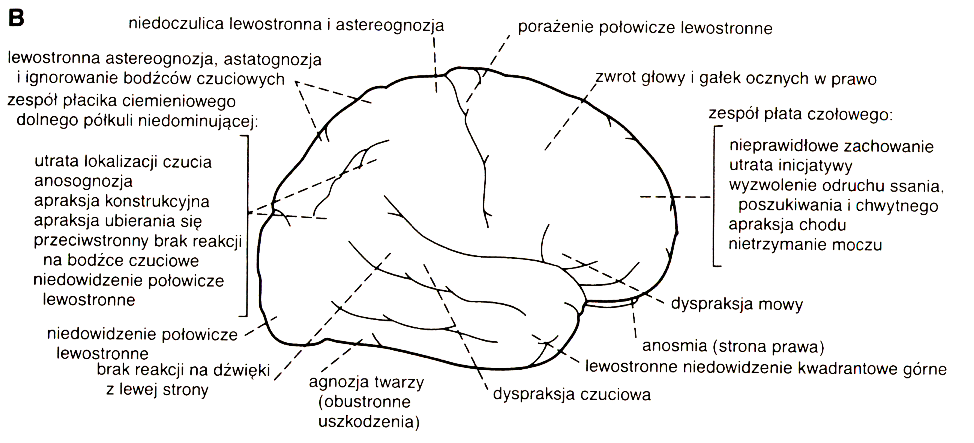 - prawy - brak świadomości niektórych obszarów przestrzeni i części ciała (jednostronne zaniedbanie);
