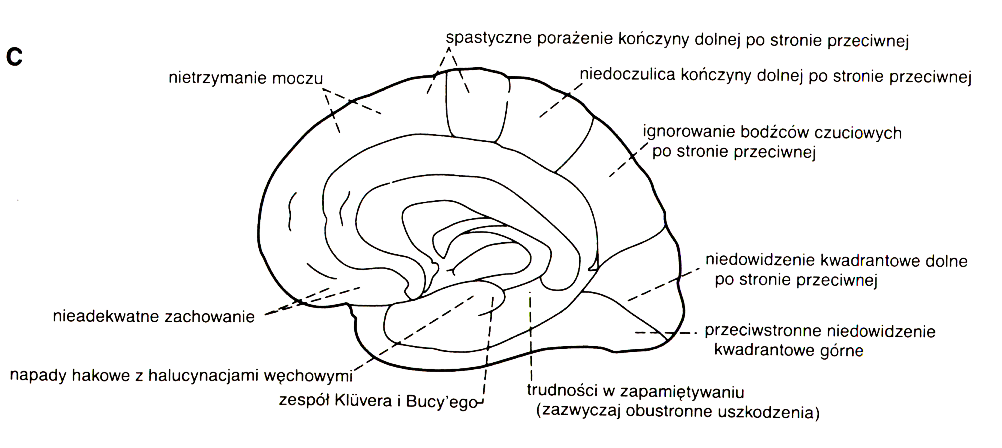 - zaburzenia osobowości (zwykle lezje ciemieniowo-skroniowe).