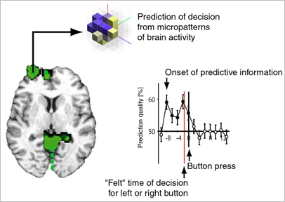 W badaniach fMRI wykryto w płatach czołowych obszary, które jeszcze wcześniej planują działanie; ich analiza pozwala na przewidzenie prostych decyzji nawet na 10 sekund przed ich "świadomym podjęciem"!
