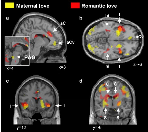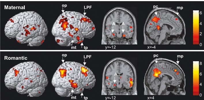 Obydwa rodzaje miłości aktywują specyficzne regiony mózgu jak i wspólne obszary układu nagrody, zawierające liczne receptory oksytocyny i wazopresyny, zwiększając motywację do przezwyciężenia trudności.