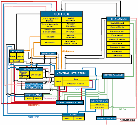 Wzrost poziomu dopaminy związany jest z obniżeniem poziomu serotoniny; taki obniżony poziom jest typowy dla pacjentów z zaburzeniami