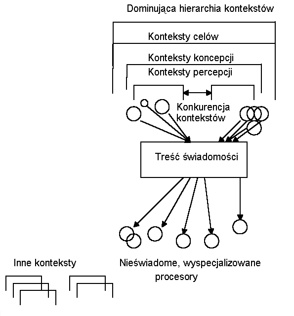 Zawartość GPR zależna jest od kontekstu; procesory na nią wpływające dostarczają informacji modyfikowanej przez słabiej pobudzone (nieświadome) procesory.