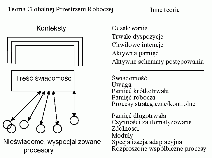 Bernard Baars (1988), "kognitywna teoria świadomości" - przykład teorii psychologicznej, podpartej pewnym rozumieniem działania mózgu.