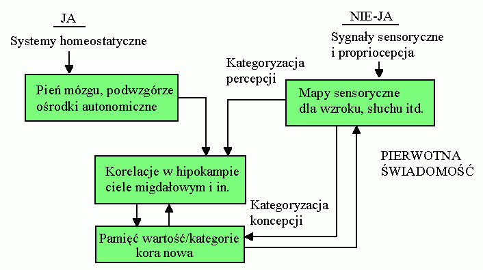 Świadomość jest reakcją mózgu na niektóre stany wewnętrzne, które są częściowo skorelowane z bodźcami dochodzącymi ze zmysłów (w tym priopriocepcji).