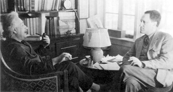 Albert Einstein discussing with Leopold Infeld