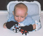 Rękawice z rzepami przyczyniają się do szybszego rozwoju ruchowego niemowlaków pozwalając dzieciom wcześniej manipulować i oglądać przedmioty.