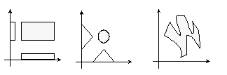 Granice decyzji klasyfikatorów opartych na logice klasycznej, rozmytej i przybliżonej wyglądają w dwóch wymiarach następująco: