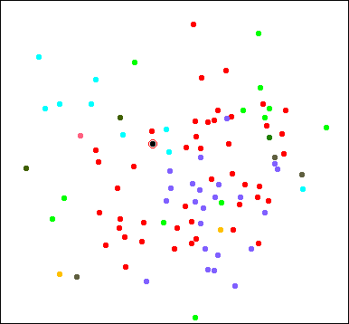 The 50 nearest neighbors with 100 Gaussian (s =1) points classified |