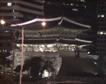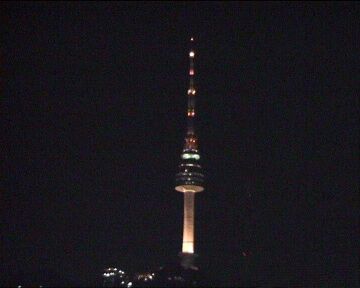 Seoul tower and gate at night.