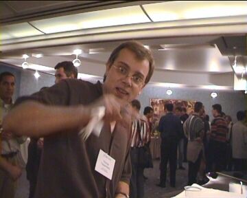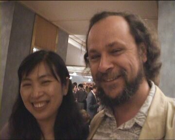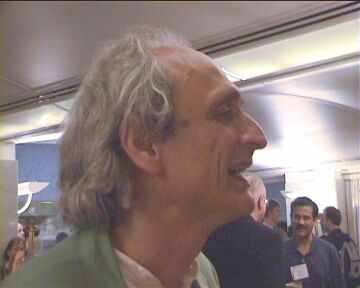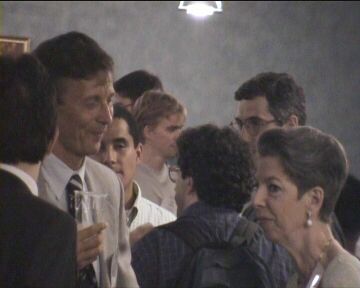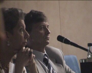 IJCNN'2000 opening ceremony; Mariagiovanna Sami and Eros Pasero, conference organizers, listing to Shun-ichi Amari giving the first plenary talk.