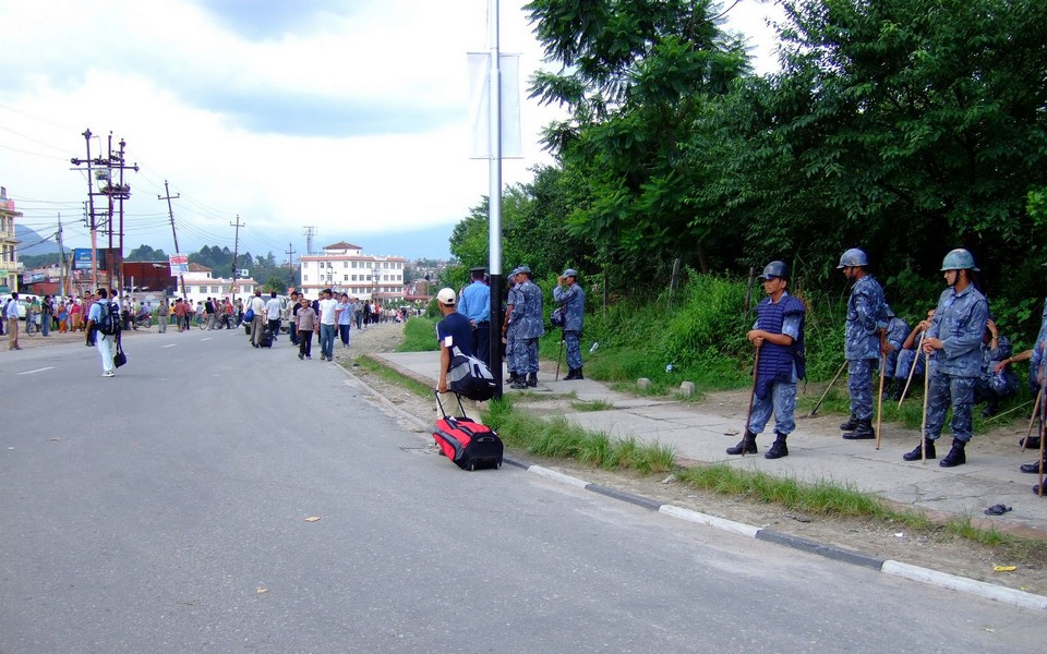 Airport has been blocked by the maoists, time to pull your own laguagge to the plane