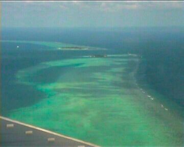 Tropical paradise - coral reef can be seen from the plain; landing in Male we pass North Male atoll; all these fish and turtles wait for us.
