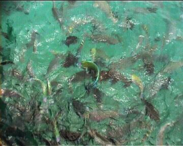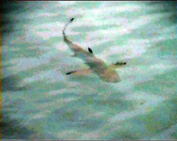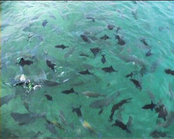 Sharks came quite often to the lagoon, no wonder, with all these fish bubbling in water ...