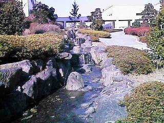 View of the little waterfall we have here, made on the 16 November. Going downhill from KIT campus - over the lantern in the horizon one can barely see the golf training net - resolution of this camera does not show it; big stone before the main stairs is for decoration.