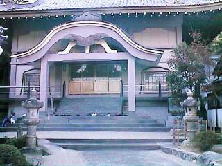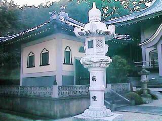 Stone lantern in front of o-tera (buddhist temple). Entry to the temple.