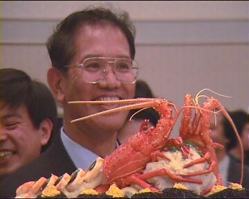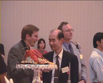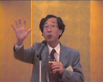 Prof. Matsumoto with dancing crabs, prof. Fukushima discussing,
