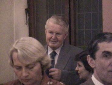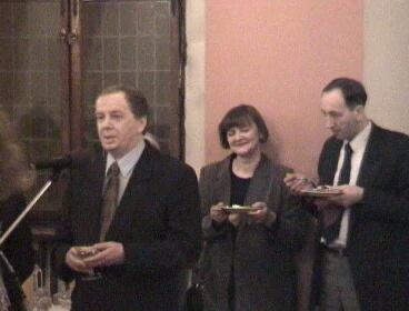 Na bankiecie usiłowano wygłosić parę przemówień (na zdjęciu od lewej