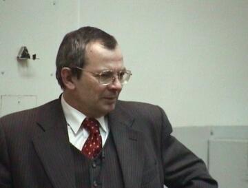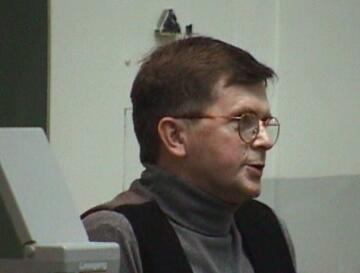Prof. J. Smak zapowiada referat pt. "Fizyka zderzeń elektronowo-atomowych - sto lat po odkryciu elektronu", który wygłosił prof. Stanisław Chwirot (IF UMK, Toruń)