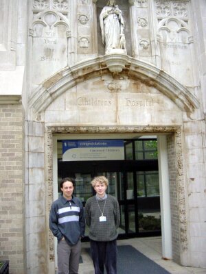 Rafal Adamczak (left) and Jarek Meller in front of Children's Hospital Research Foundation.