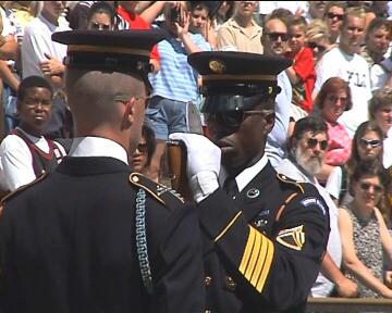 Change of guards at Arlington, in front of the grave of an unknown soldier