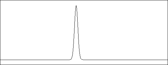 Rysunki: wykres kwadratu modułu funkcji falowej dla kx = 0.5, 1, 1.5 i 2 jednostek atomowych. Oś odciętych - położenie x.