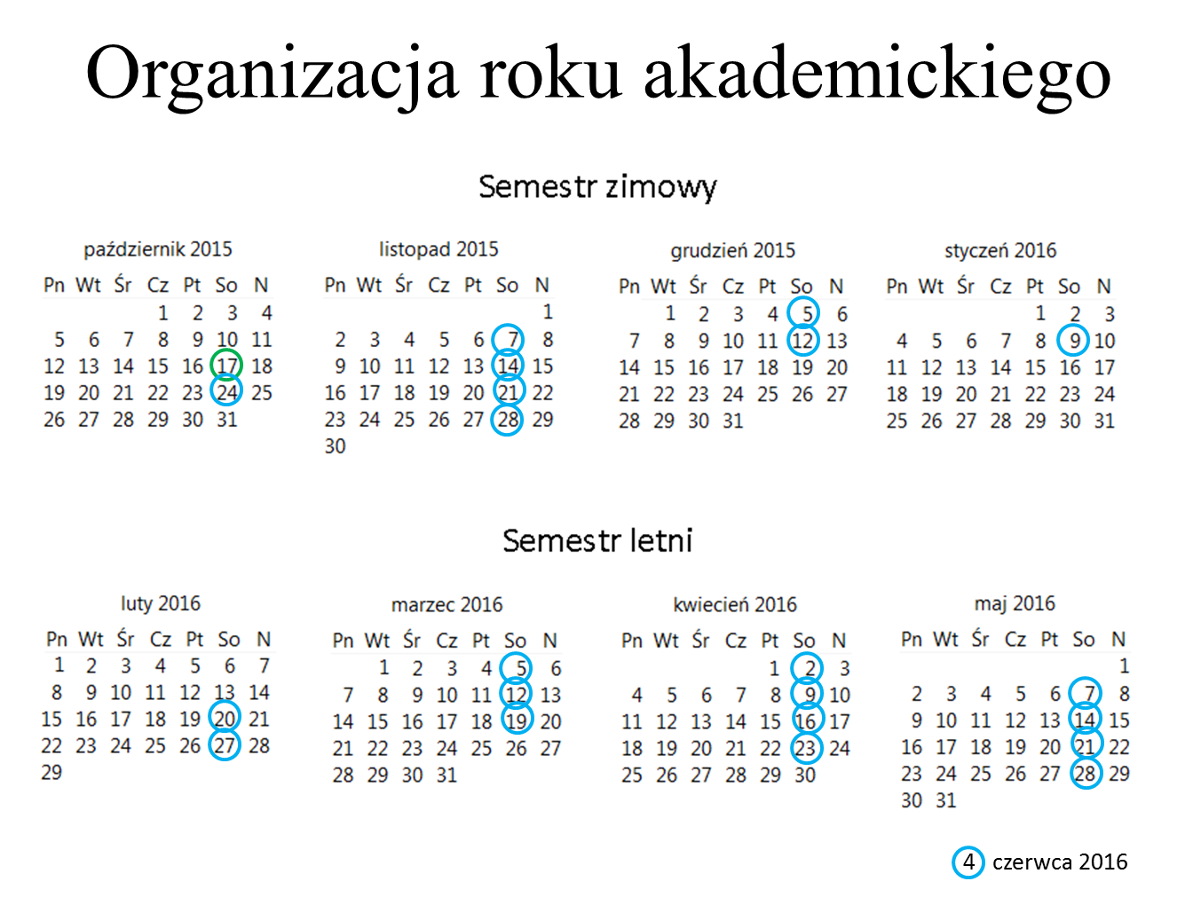 Organizacja roku akademickiego 2015/2016