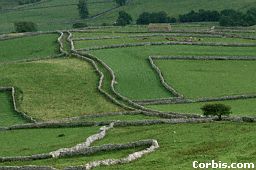 Walled Fields in Yorkshire Dales Old stone walls separate fields in the Yorkshire Dales. Some of the double walls were used as drovers roads in the Middle Ages. Adam Woolfitt (www.corbis.com, Image ID: AW012349) | |