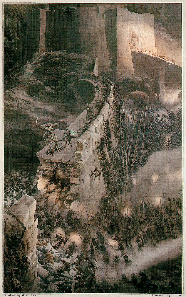 Król i jego towarzysze patrzyli na to w osłupieniu. Rozumieli już, że potęga Sarumana legła