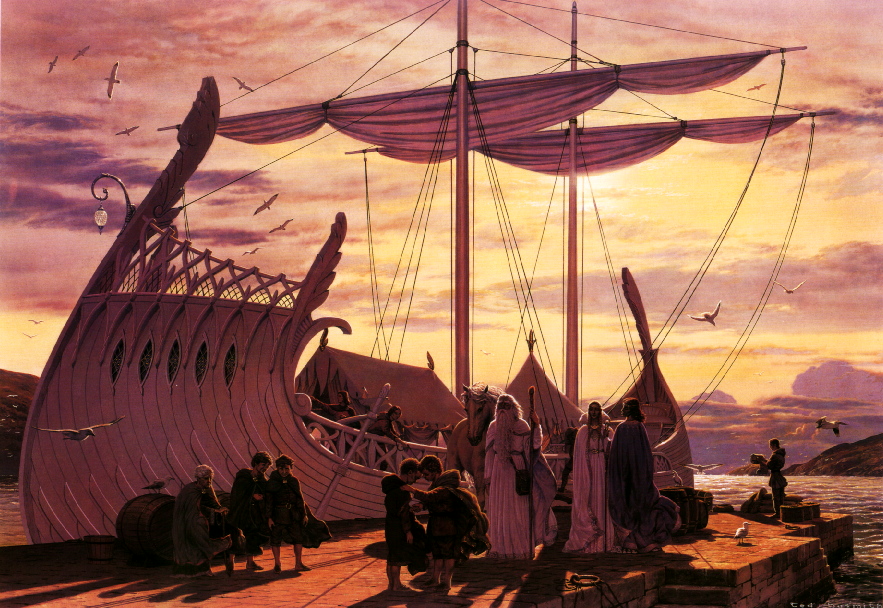 którzy mieli odpłynąć na statku, ucieszyli się, że Gandalf popłynie razem z nimi."